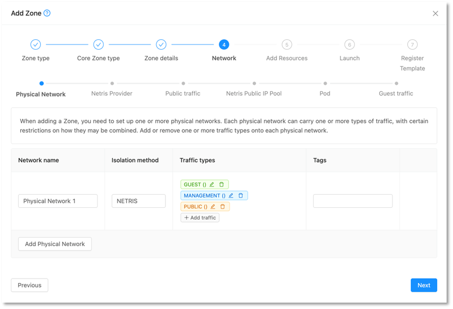 When creating a new zone with Netris as isolation method, some additional steps have been added to the wizard.